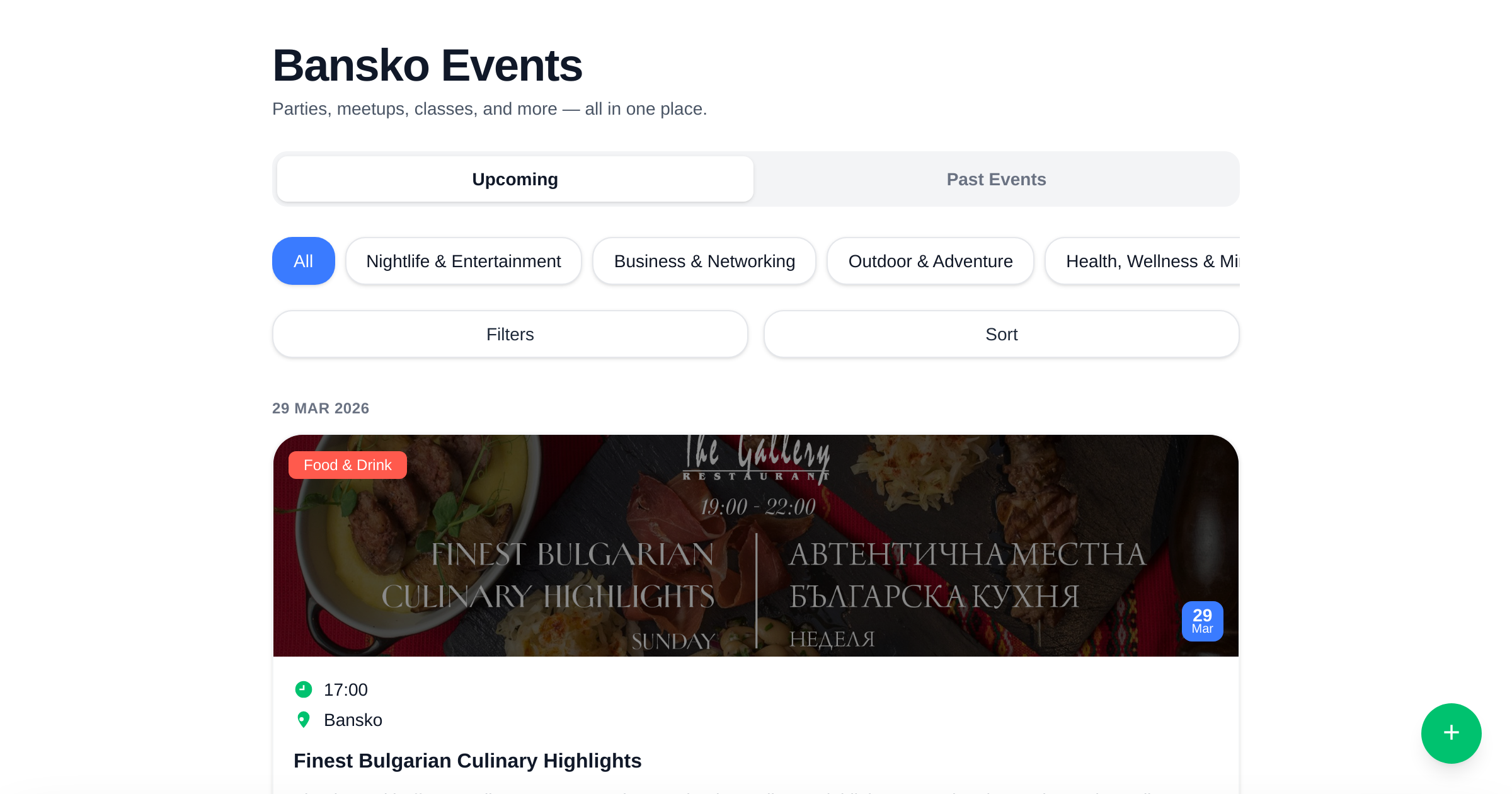 Daily guide to everything happening in Bansko — parties, meetups, classes & more.
